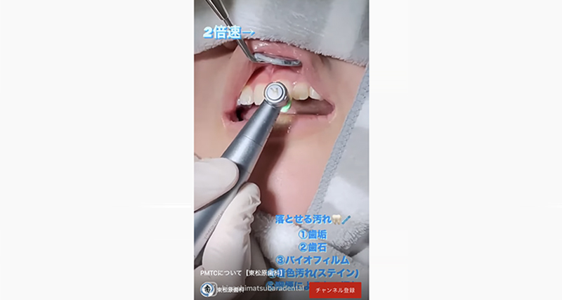柔らかい専用のブラシと研磨剤を含むペーストを使用し、歯の表面を磨くことで着色を落とし、表面をツルツルに仕上げていきます。