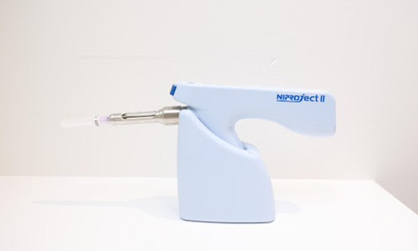 当院では、麻酔で使用する針を35Gという認可されている中で最も細い針を使用しています。また表面麻酔を塗ることで、針を刺す際の痛みを軽減できます。麻酔液を注入する速度が調節できる電動麻酔器を使用しているため、注入時の痛みも軽減されます。